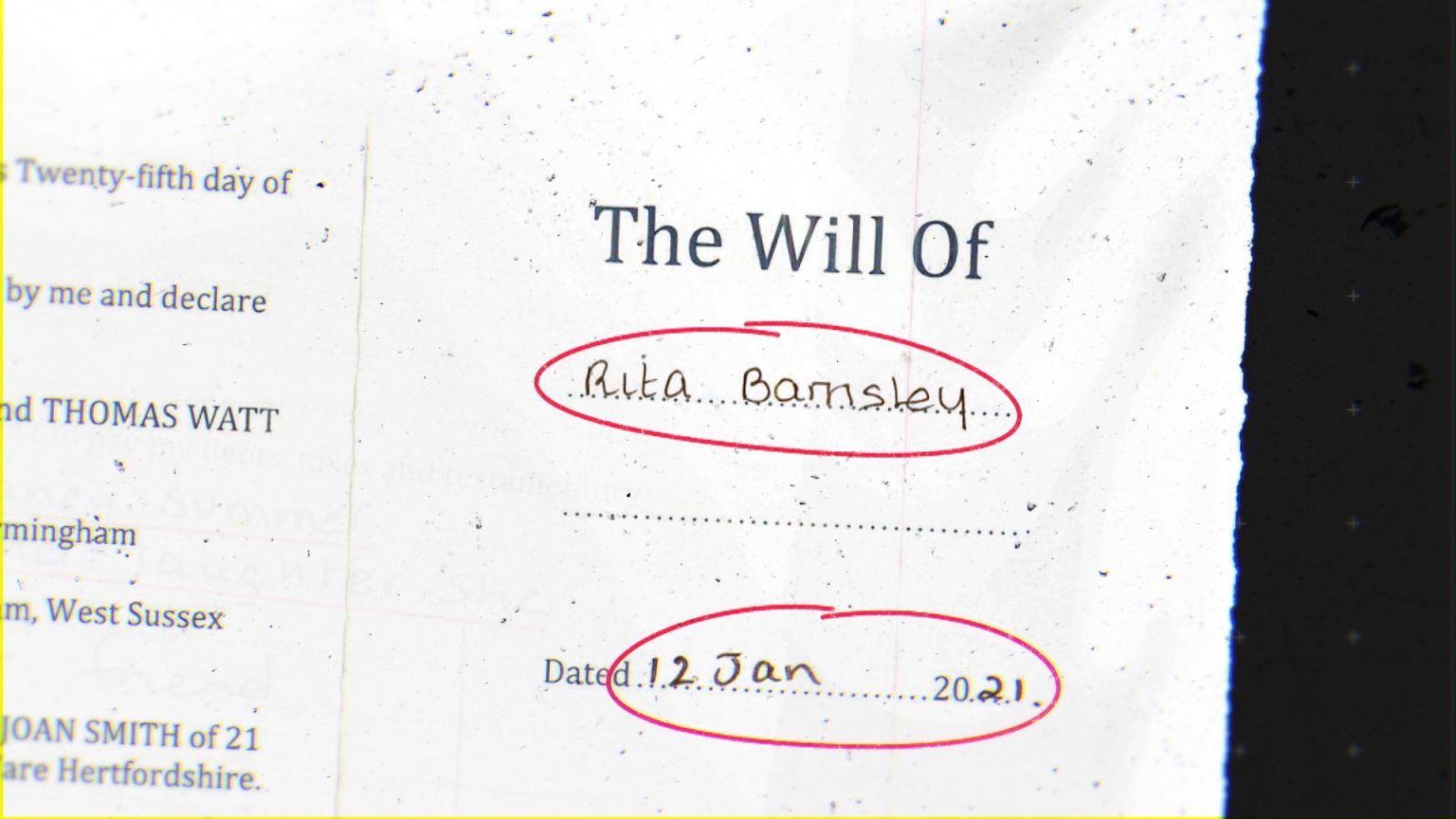 Rita Barnsley died on 5 August 2021. Attempts to execute her will were made just four days after her death.