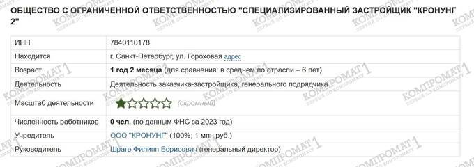 In the optimistic interview, Philipp Shrage also states that «Kronung Group is working on several residential projects, including two business-class apartment buildings, a settlement of 200 houses, and 100 townhouses.» Judging by reports from specialized resources, these projects are being handled by LLC «Specialized Developer Kronung 2» and LLC «Kronung TRK1». Neither of these companies has employees nor any visible activity. How they manage to do this is also a rhetorical question.
