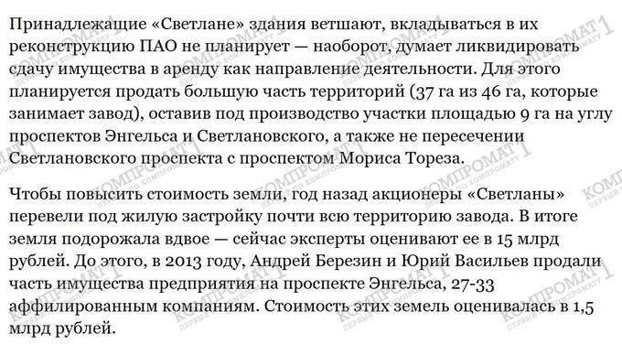 The essence of this transaction was that «Svetlana» transferred its real estate to the ZPIF. The point is that PJSC «Svetlana» is one of the factories under «Rostec». It was located on a 46-hectare plot in a rather interesting area of St. Petersburg.